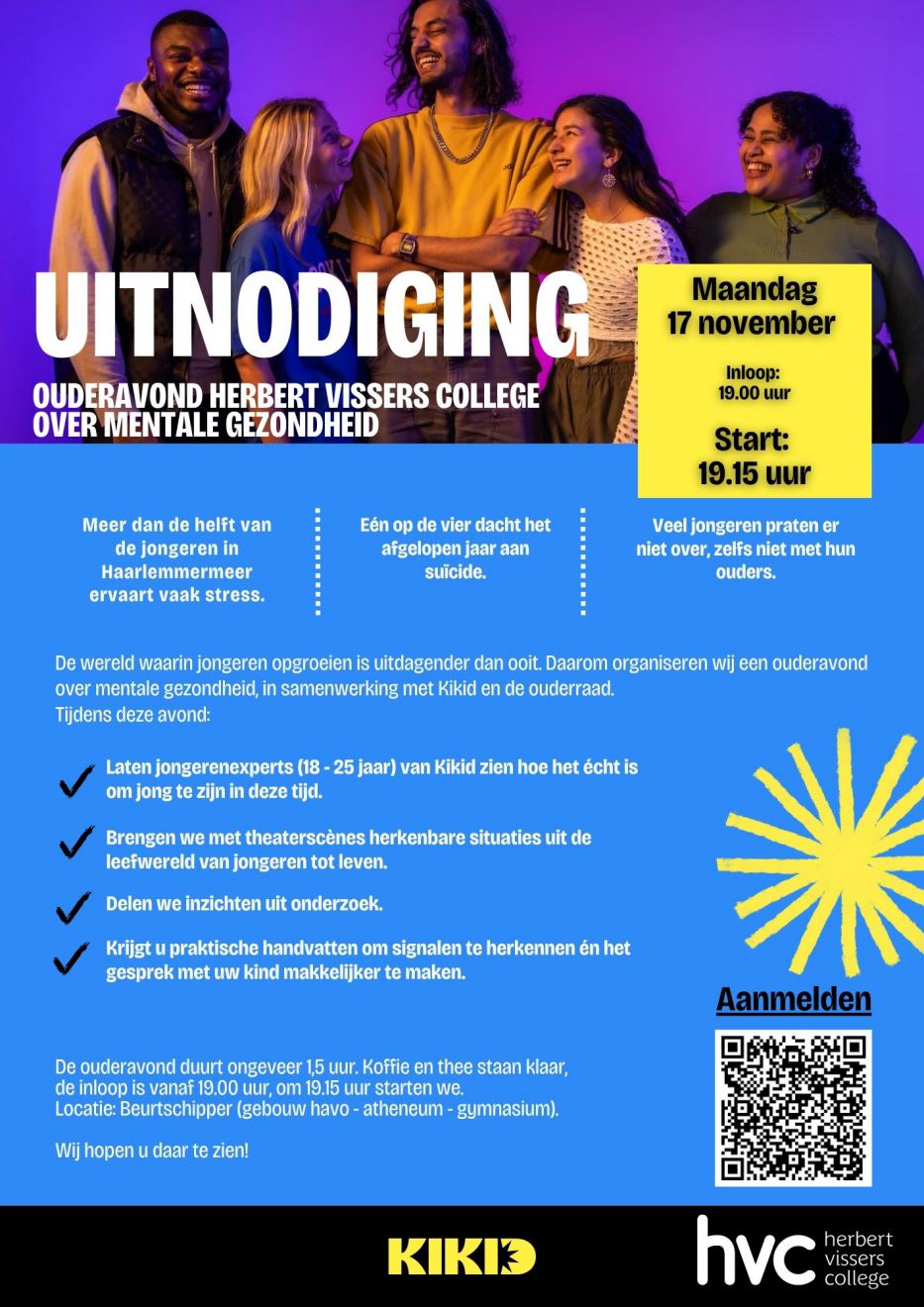 Achter de glimlach van veel jongeren schuilen prestatiedruk, onzekerheid en gevoelens van eenzaamheid. En vaak praten ze daar niet over, zelfs niet met hun ouder(s) en/of verzorger(s). Daarom organiseren we i.s.m. met onze ouderraad en samen met Kikid een ouderavond over mentale gezondheid.
